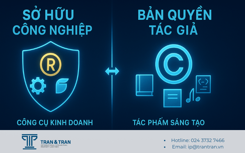 Một câu nói tóm tắt đơn giản: Bản quyền bảo vệ tác phẩm, còn Sở hữu công nghiệp bảo vệ công cụ kinh doanh.
